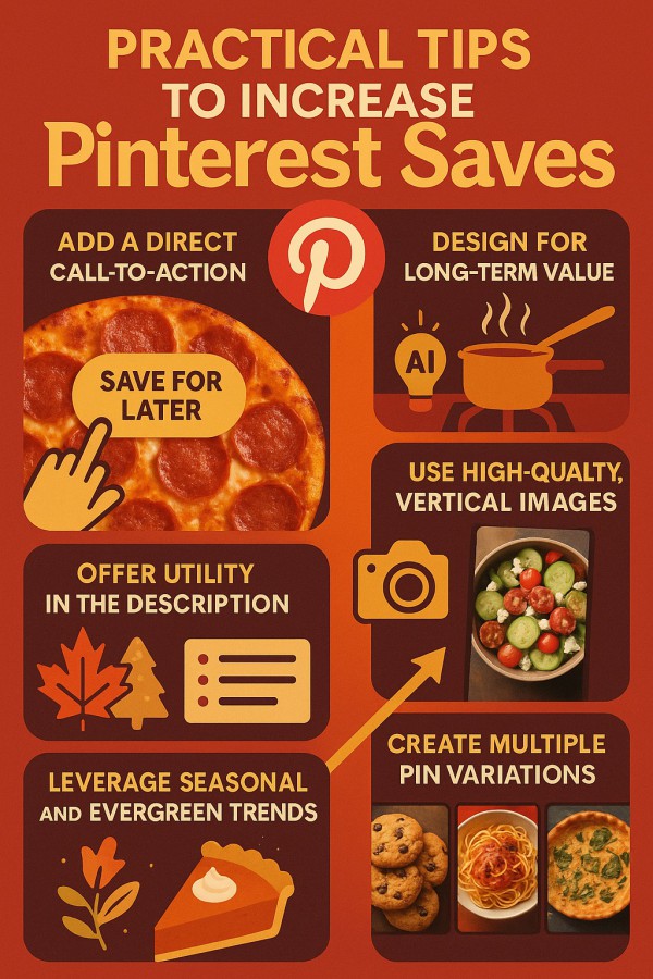 People save pins they expect to revisit. Content with a “long shelf life”—guides, recipes, tutorials, checklists, or timeless design ideas—tends to attract more saves than ephemeral updates or short-lived promotions.
