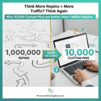 When it comes to long-term value on Pinterest, it might be tempting to believe that a channel with 1 million repins is more powerful than a channel with only 10,000 custom pins. After all, a million is a massive number.