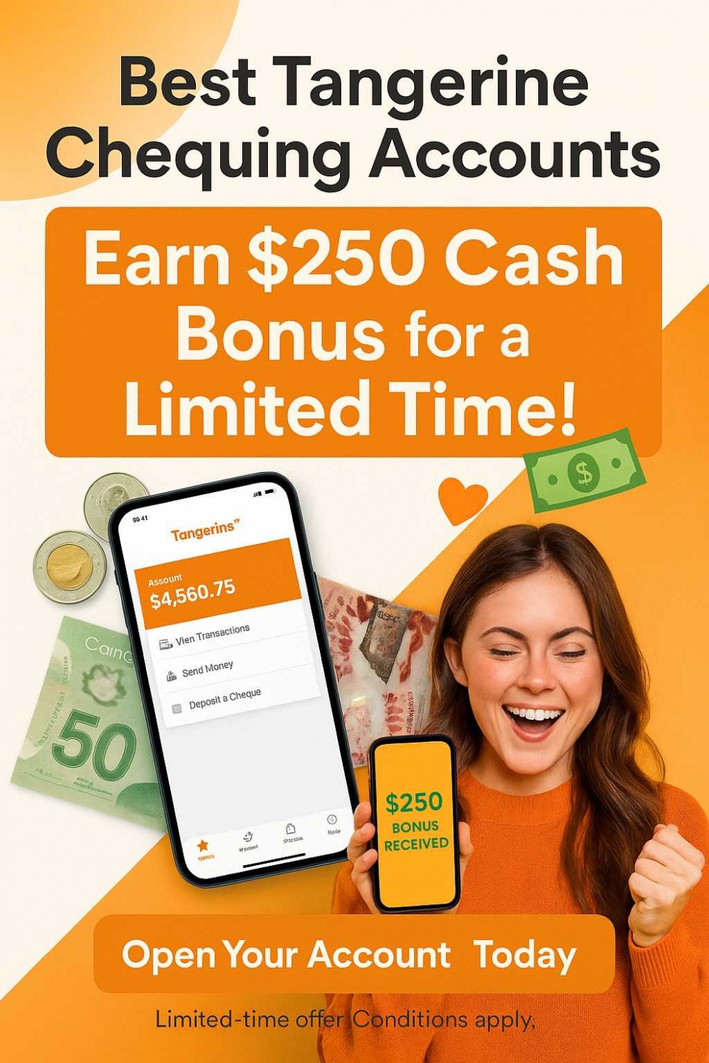 Open your Tangerine No-Fee Daily Chequing Account before July 31, 2025, and claim your $250 cash bonus today.