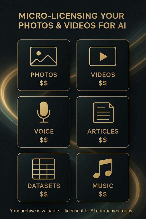 Thatβs where micro-licensing comes in. Instead of selling your entire portfolio outright, you can license individual pieces β photos, clips, and creative assets β to AI firms on your own terms, earning royalties every time your content contributes to a dataset or training process.