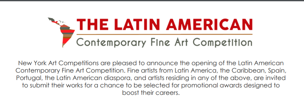 New York Art Competitions are pleased to announce the opening of the Latin American Contemporary Fine Art Competition. Fine artists from Latin America, the Caribbean, Spain, Portugal, the Latin American diaspora, and artists residing in any of the above, are invited to submit their works for a chance to be selected for promotional awards designed to boost their careers.