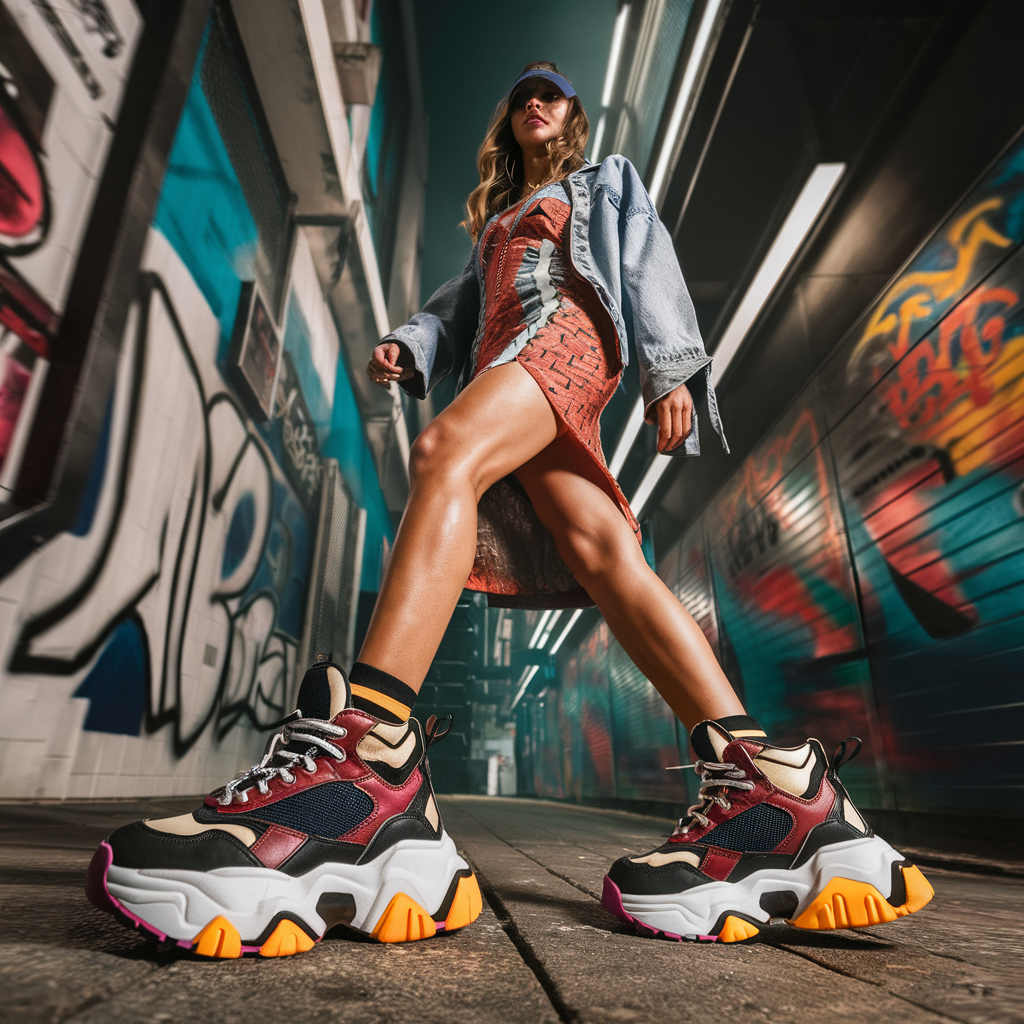 Now, let’s lace up those chunky sneakers! These statement shoes, with their bold soles and eye-catching designs, were a major trend in the early 2000s, and they’re making a triumphant return. Chunky sneakers offer the perfect blend of comfort and style, effortlessly pairing with everything from dresses to denim. So, whether you’re hitting the streets or just hanging out, these sneakers are your go-to for adding a trendy twist to any outfit. Walk tall, walk stylishly, and embrace the chunky sneaker trend with flair!