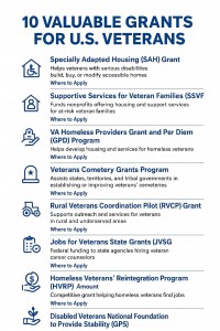 | Cemetery Grant | Build/improve veteran cemeteries | Varies | State/tribal governments | www.va.govΒ |