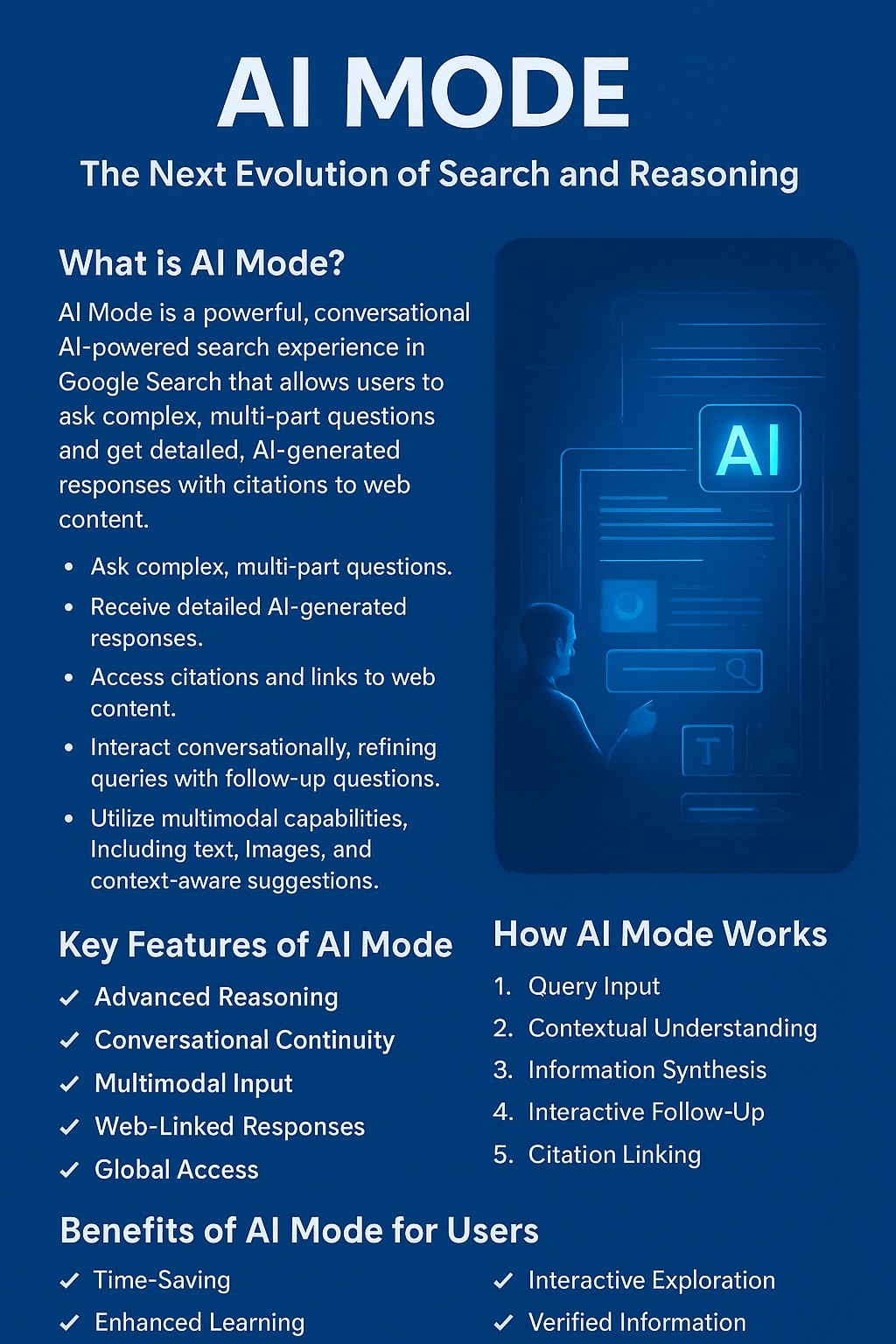 AI Mode is a significant leap forward in AI-driven search, offering multimodal, reasoning-focused, and conversational capabilities that empower users to access knowledge faster, more accurately, and interactively. As AI becomes integral to everyday search, AI Mode sets the standard for the next era of intelligent information discovery.