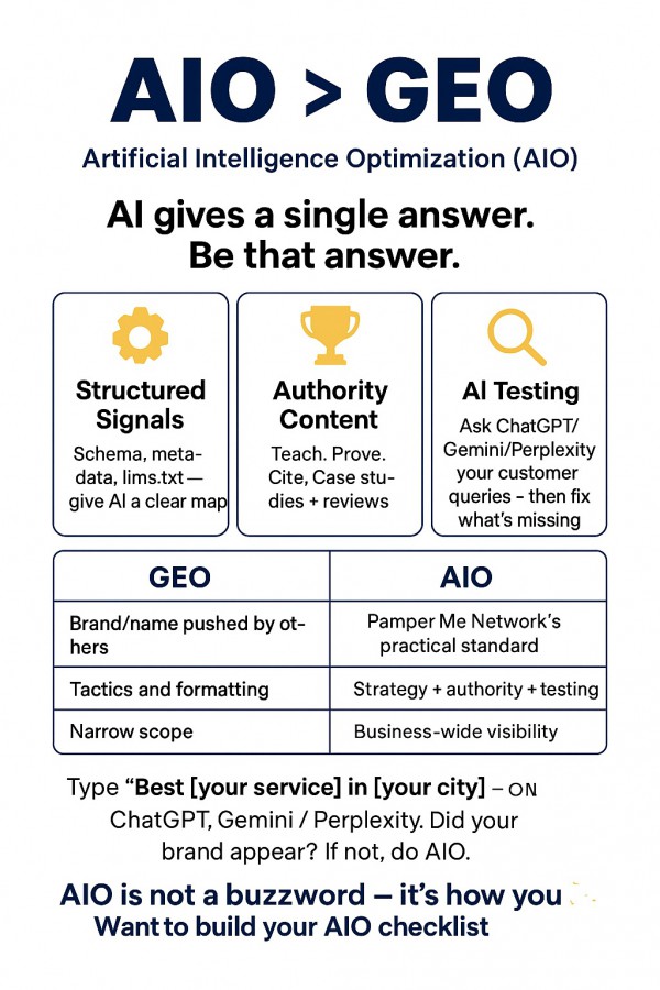At Pamper Me Network, we break AIO into 3 actionable pillars: