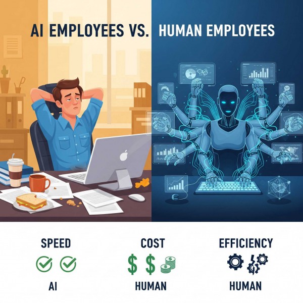 The debate of AI employees vs. human employees is not about who wins—it’s about how they work together. AI employees bring speed, scalability, and 24/7 consistency, while humans bring creativity, empathy, and ethical decision-making.
